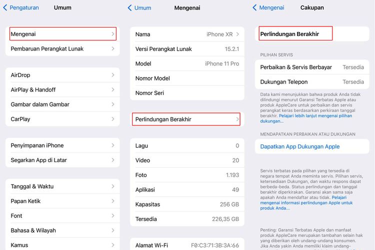 Cara cek garansi iPhone lewat menu pengaturan perangkat