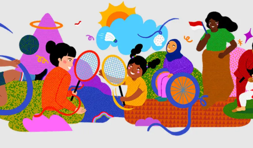 Diela Maharani, ilustrator yang membuat Google Doodle tahun ini, menekankan isu disabilitas dengan membuat kursi roda sebagai huruf “G” kedua pada kata “Google”.
