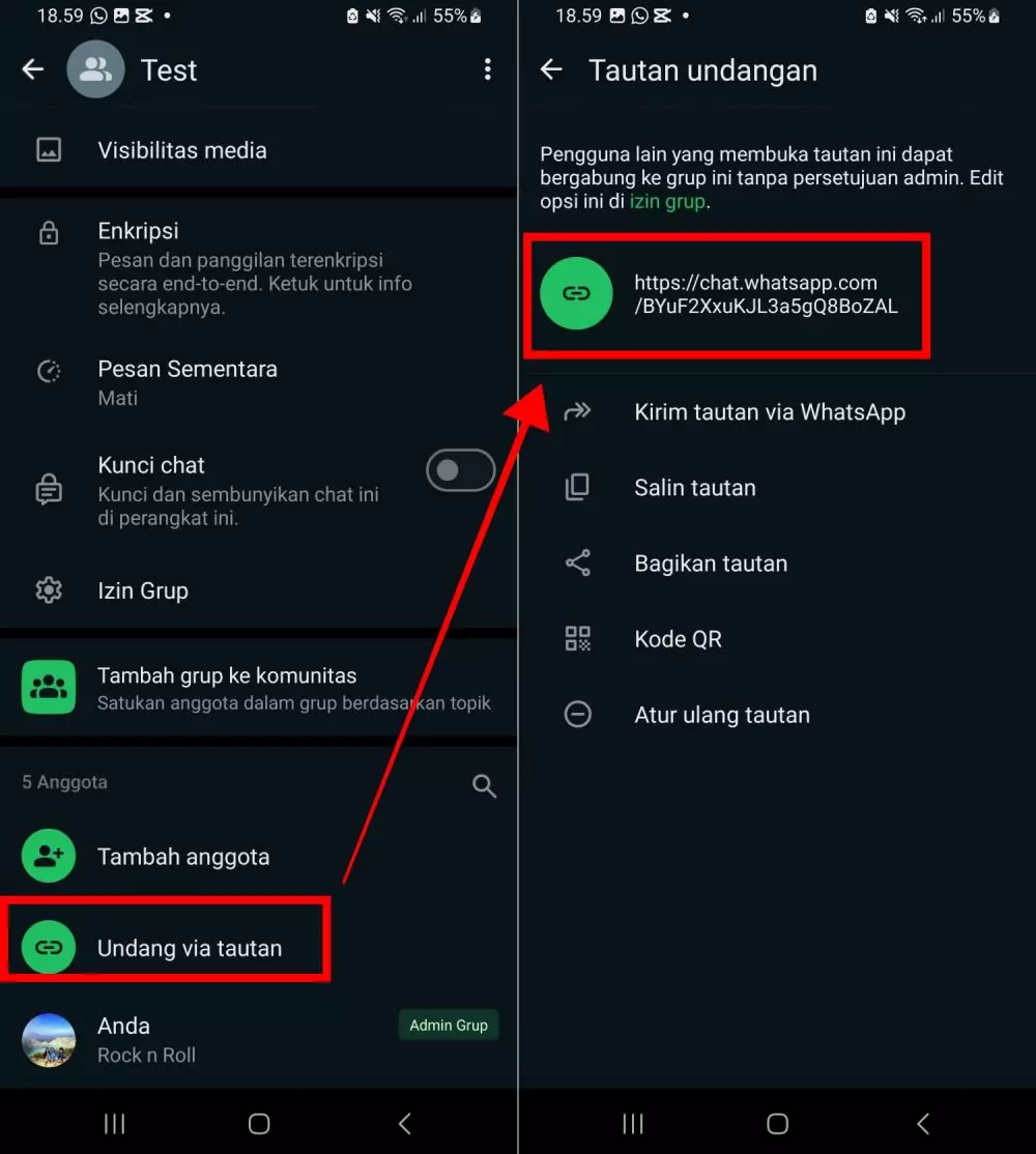 Selain itu, admin dapat mengatur ulang atau menonaktifkan tautan undangan kapan saja, memberi kontrol yang diperlukan. Cara ini sangat berguna untuk mengelola akses saat grup tidak lagi terbuka untuk anggota baru.
