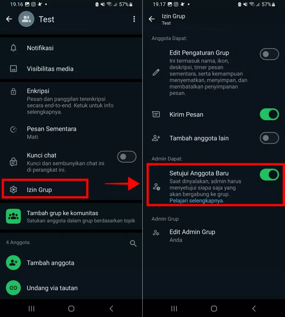 Meskipun membuat tautan undangan grup untuk memudahkan orang bergabung, admin harus selalu tidak mengizinkan sembarang orang masuk tanpa persetujuan. Dengan mengaktifkan pengaturan “Setujui Anggota Baru” di WhatsApp, admin dapat meninjau setiap permintaan bergabung sebelum seseorang menjadi bagian dari grup.